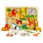 Les puzzles à boutons sont essentiels pour le développement de la motricité fine. En saisissant le bouton, l’enfant muscle ses doigts de manière ludique. Ce modèle avec des animaux familiers suscite toujours un grand intérêt et facilite le langage.